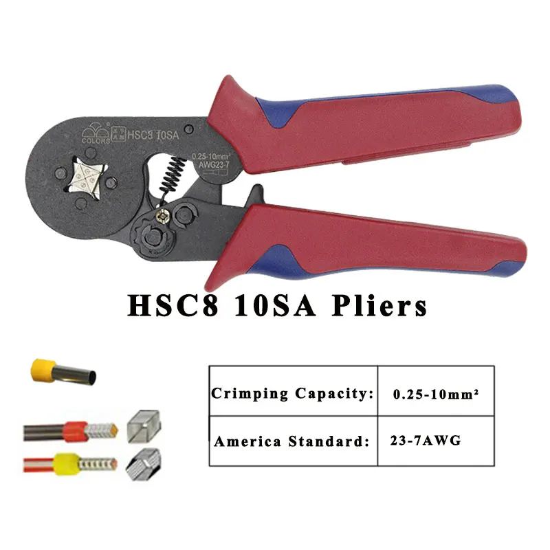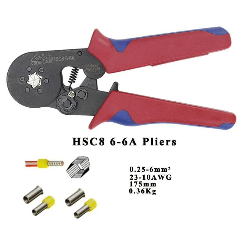 | HSC8 10SA crimping pliers 0.25-10mm2 23-7AWG HSC8 6-6A 0.25-6mm2 with box tube type needle type terminal mini crimp wire tools |